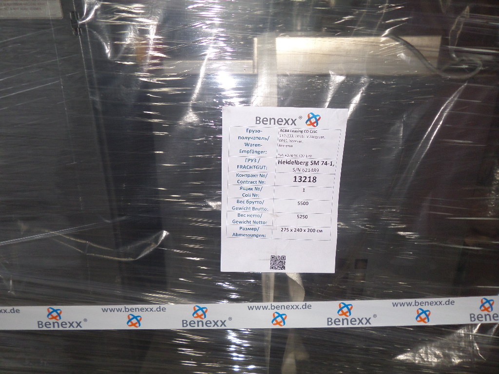 Heidelberg SM 74-1 for Armenia Posted on 24/01/2014 by benexx Packaging an Loading of Heidelberg SM 74-1 for LIONPRINT from Yerevan/Armenia.