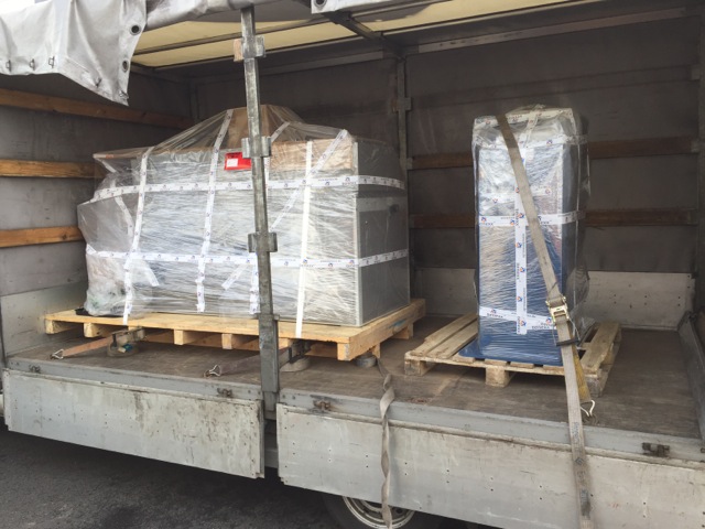 5.03.15 Loading of Perfect Binder to France. A “French machine” goes back to the home. Bon voyage!